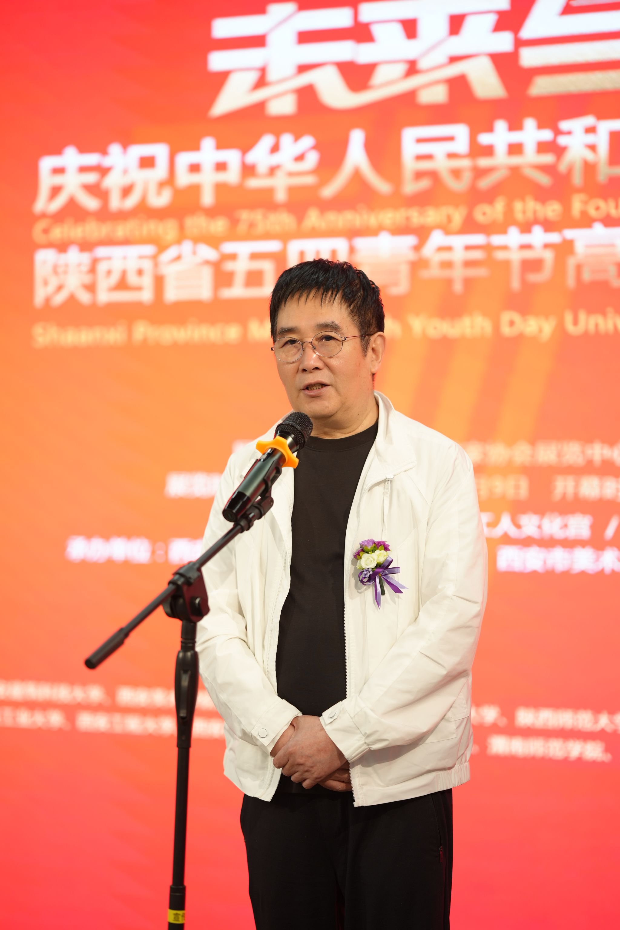 陕西省美术家协会副主席蔺宝刚、西安市美术家协会主席杨霜林等在开幕式现场致辞,杨霜林先生提到:树高千尺有根,江河万里有源,期待通过这些华诞献礼,鼓励各高校师生辛勤耕耘,深研绘画技法和理论,进一步激发青年人的创造力和创新精神。