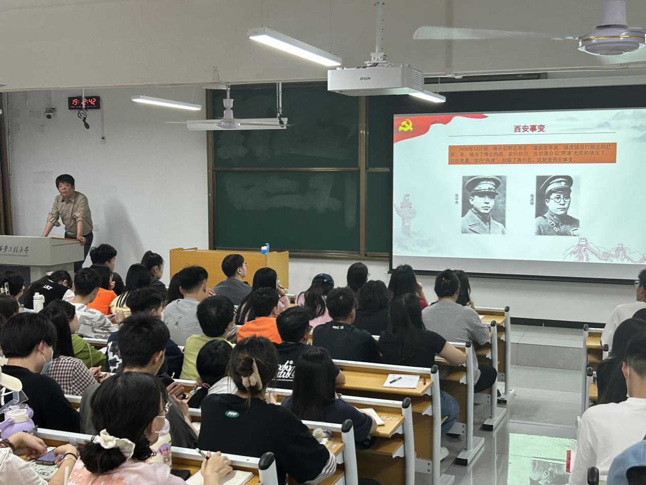 入党积极分子培训班上,马克思主义学院赵鹏副教授,做了题为“中国共产党为什么能”的专题党课讲座,全体入党积极分子参加会议,辅导员刘文奇主持会议。