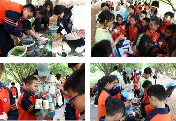临潼校区樱花长廊,制定课程主题为“植艺印韵,雅韵流芳”。本次课程旨在利用春天鲜花盛开的时节特点,通过手工制作工艺品,培养小朋友们的观察力、创造力、想象力、动手实践能力以及团队合作意识,为他们的全面发展奠定坚实基础,感受手工拓印画的独特效果美,体验不同绘画形式带来的乐趣。