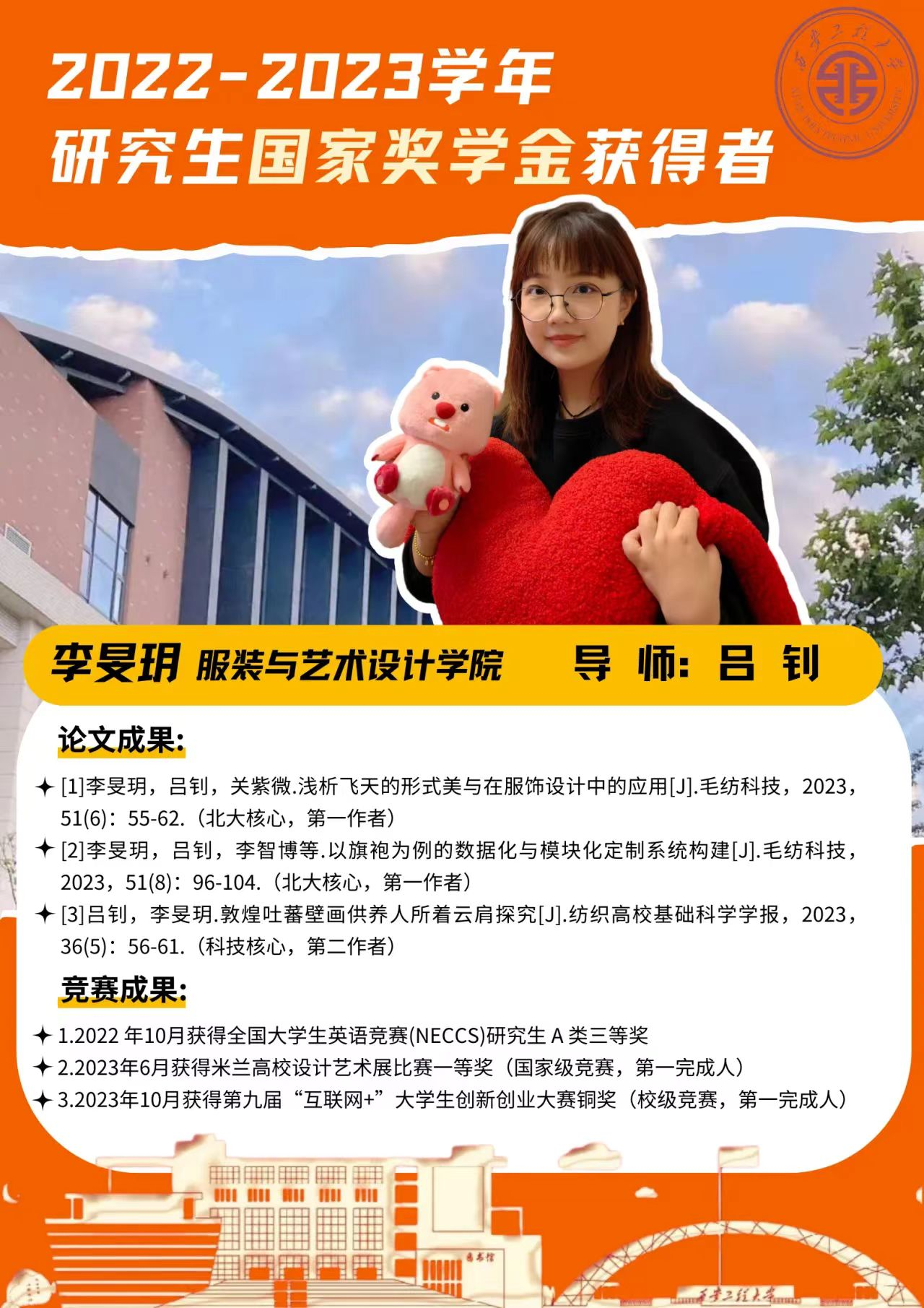 2023年,韩h漫 在研究生培养上坚守立德树人根本任务,教育教学持续获得骄人成绩。其中2021级研究生张健、李旻玥、杭格格、黄霞、赵晨五位同学获得研究生国家奖学金。现将三位同学的事迹简介与取得的成绩做风采展示如下,期望广大同学以优秀同学为榜样,勤奋学习,踔厉奋发,勇毅前行,取得更大进步与成绩。