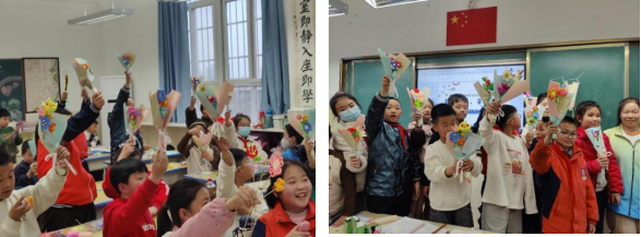的师生们整装待发,前往康复路小学开展本学期第一次社团课程。此次特色课程主题为“黏土世界,童趣无限”,目的是让孩子们在动手制作中学会感恩,懂得珍惜身边的美好。鲜花代表着美好与祝福,大学生们通过教授制作黏土玫瑰,引导小学生们学会感恩。课程开始,青年志愿者们首先向小学生们介绍了感恩的重要性,引导他们思考生活中值得感恩的人和事,并详细讲解了黏土玫瑰的制作方法,手把手地教孩子们动手制作属于自己的感恩玫瑰。孩子们积极回答大哥哥大姐姐们提出的问题,充分发挥想象力,用黏土塑造出各种形状的玫瑰,不仅锻炼了动手能力,还体验到了创作的乐趣,同时深入认识到学会感恩的意义。课程的最后,孩子们在大学生的引导下,写下了对父母的一句话,以表达了对父母的感恩之情。这些充满真挚情感的话语,让在场的老师们都为之动容。