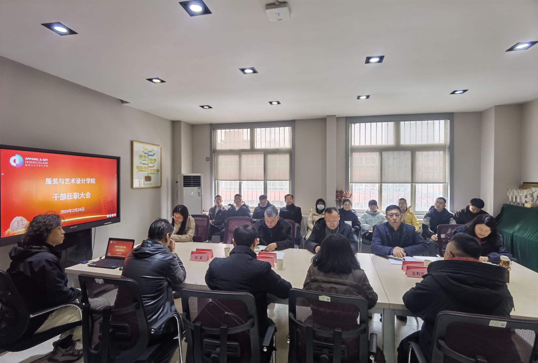 在服装楼3楼会议室召开干部任职大会。校党委委员、党委组织部部长黄海峙出席会议,学院党政领导班子成员和处级干部,院办学工办主任、各党支部书记、全体辅导员参加会议。会议由院党委书记苏博主持。