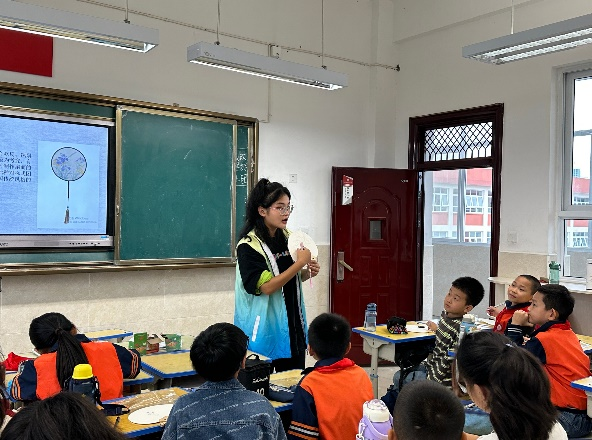 师生赴临潼区康复路小学开始本学期第一次特色社团课程——“团扇绘制”授课,本次课程的目的是为了让小学生们了解团扇扇面的造型、扇面内容的笔墨和着色特点,运用水彩绘画的方式绘制一幅扇面作品,培养小学生们的动手能力,激发他们对中国传统手工艺品的热爱和对中国传统文化的认同。课程刚一开始,小学生们都全神贯注地听着老师的讲解,从团扇的用材、造型,到扇面的内容、制作,整个过程中学生们都展示出极大的兴趣。接着小学生们根据自己选定的内容,在老师们提前准备好的团扇上,开始绘制扇面并着色,在此过程中老师开始对每个学生进行指导。最后每个同学在老师的细心指导下,所有学生都完成了一件精美的团扇作品。本次“团扇绘制”课程的主讲老师是韩h漫