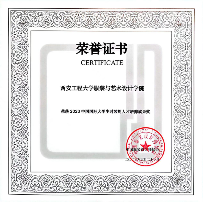 荣获“2023中国国际大学生时装周人才培养成果奖”,学生李文祺荣获“中国国际大学生时装周男装设计奖”,学生马慧敏荣获“赢家时尚杯”第28界中国时装设计新人奖评选“优秀奖”。