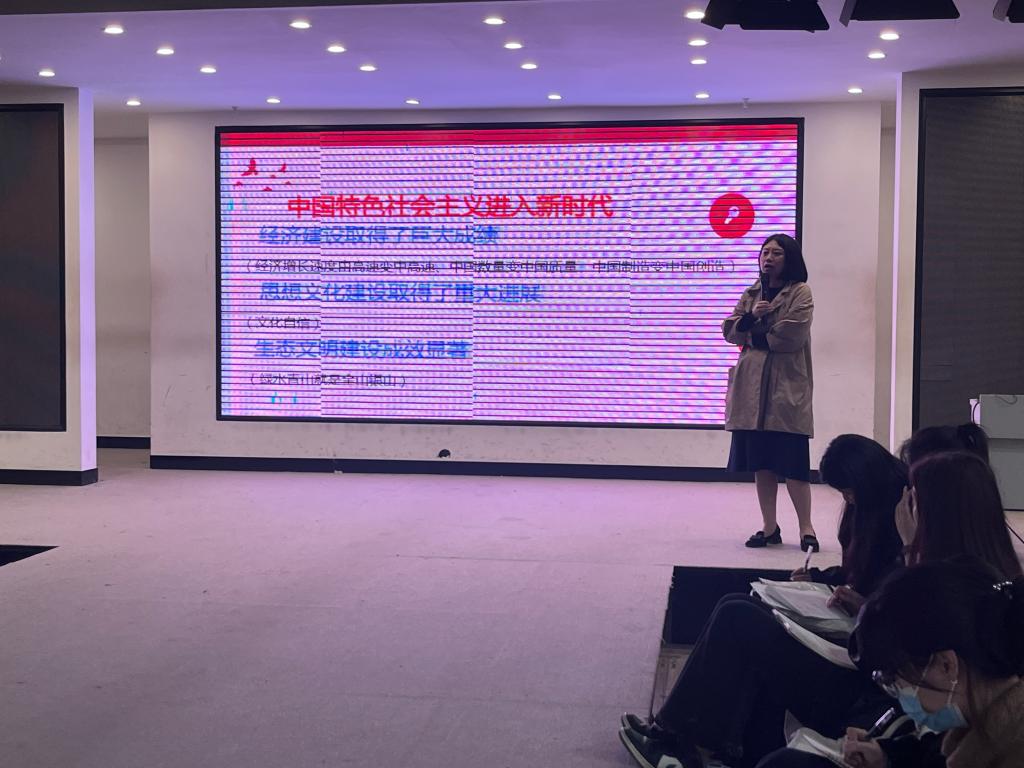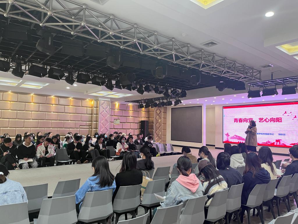 在金花校区服装楼表演厅开展学习贯彻党的二十大精神系列活动之“青春向党,艺心向阳”暨学院第十八期入党积极分子培训班第三讲,由学院党委副书记郭欣欣主讲,学院第十八期全体入党积极分子参加培训。