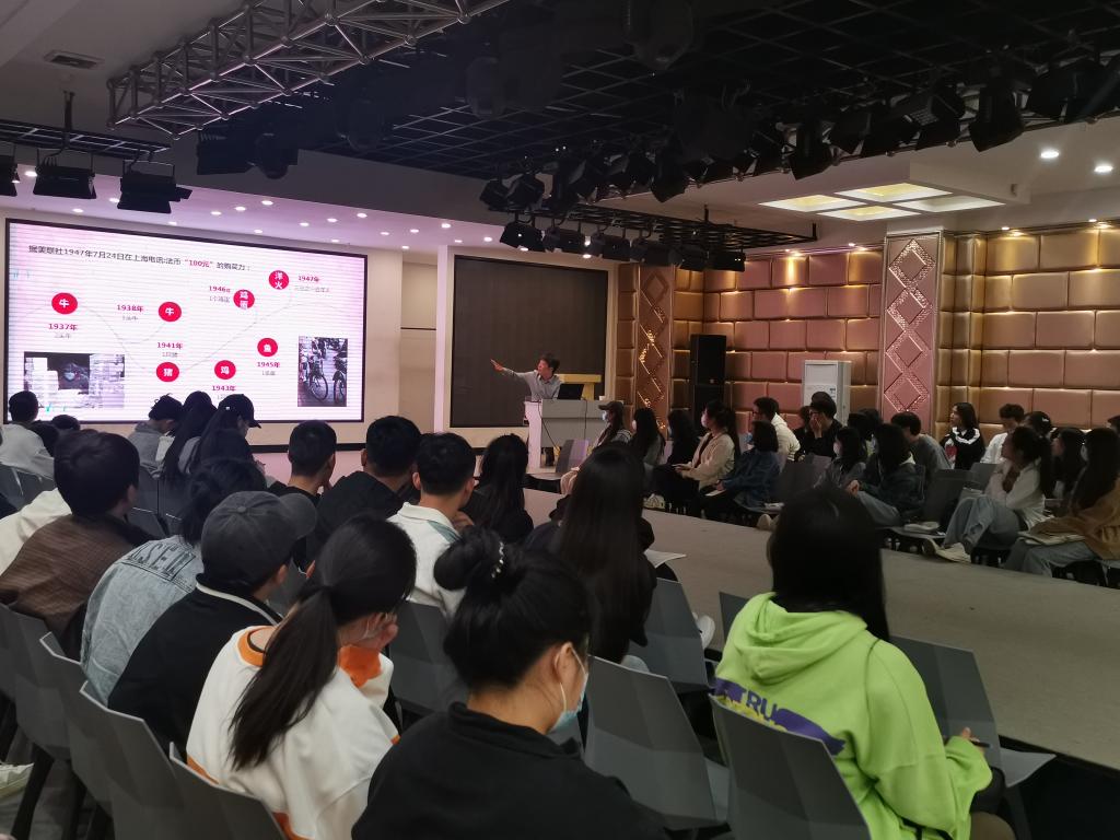 在服装楼表演厅举办“在党的发展历程中汲取智慧和力量”师生联合主题党日活动,邀请马克思主义学院赵鹏副教授做专题讲座,学院全体党委委员、班子成员、党支部书记、副书记及第十八期入党积极分子参加了活动,活动由专职组织员吴艳杰主持。