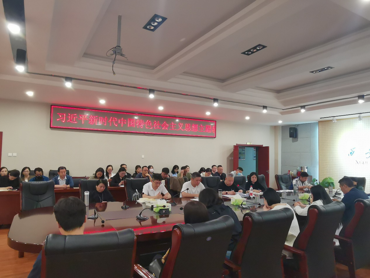 在金花校区第三会议室,召开学习贯彻习近平新时代中国特色社会主义思想主题教育安排部署会,学院党委委员、全体院领导、教授委员会成员、教代会成员、党支部书记、正副系主任、院长助理、各归口秘书、工会全体委员、院办主任、学工办主任、团总支书记、教师代表等50余人参加会议,会议由院党委书记李筱胜主持。