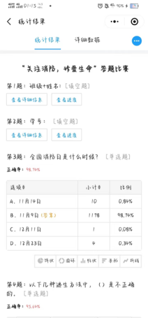 2022年11月17日,系列活动第二场“关注消防,珍爱生命”活动通过线上答题的方式开展。本次以系列活动第一场线上宣讲会为基础,结合同学们关注的消防安全知识,精心设计20道问答题。同学们踊跃参与,线上答题参与的人数达到1194人,答题正确率高达98%。通过线上答题活动,同学们进一步巩固了消防安全知识,提升了消防安全意识。