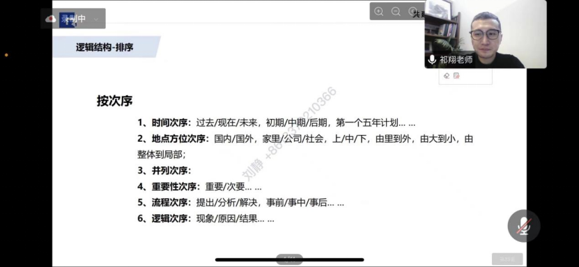 祁翔老师用文字、案例、择业逻辑为学生们提供了指导,讲解了结论先行、以上统下、归类分组的概括方法。并结合自己以往经历提醒同学们面试时应保持“我,是万千人中,最普通,但最有特点的人!”的心态。