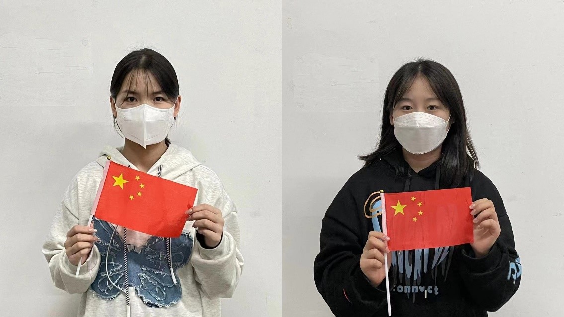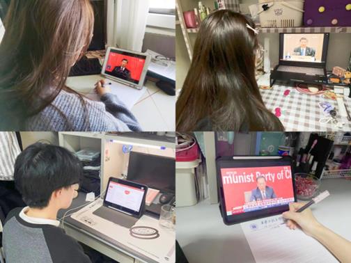 (同学们线上观看党的二十大开幕会,制作“祖国我想对你说”明信片、留言签,与国旗合影)