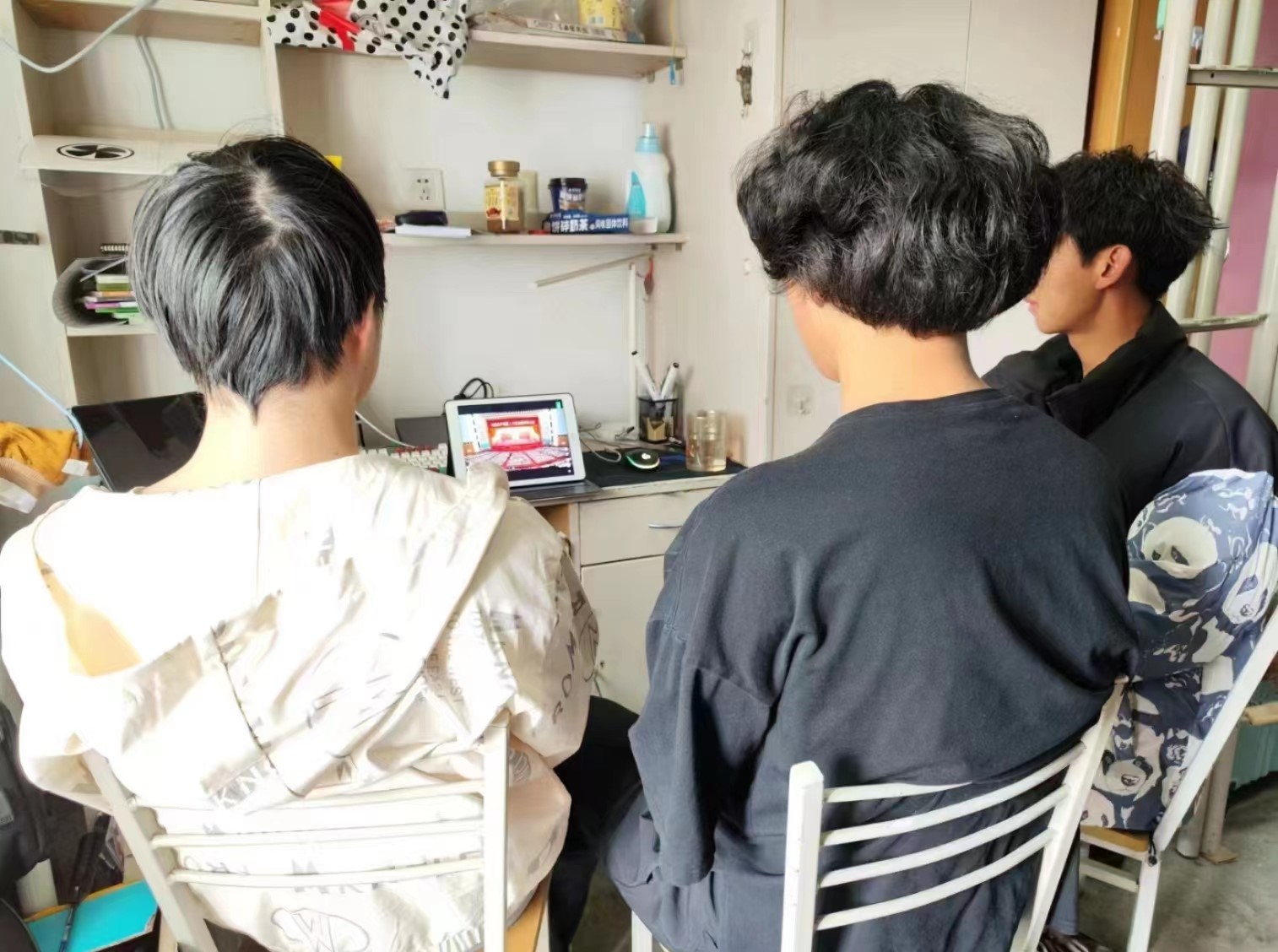 (团支书进行演讲,共同观看“青年大学习”特辑)
