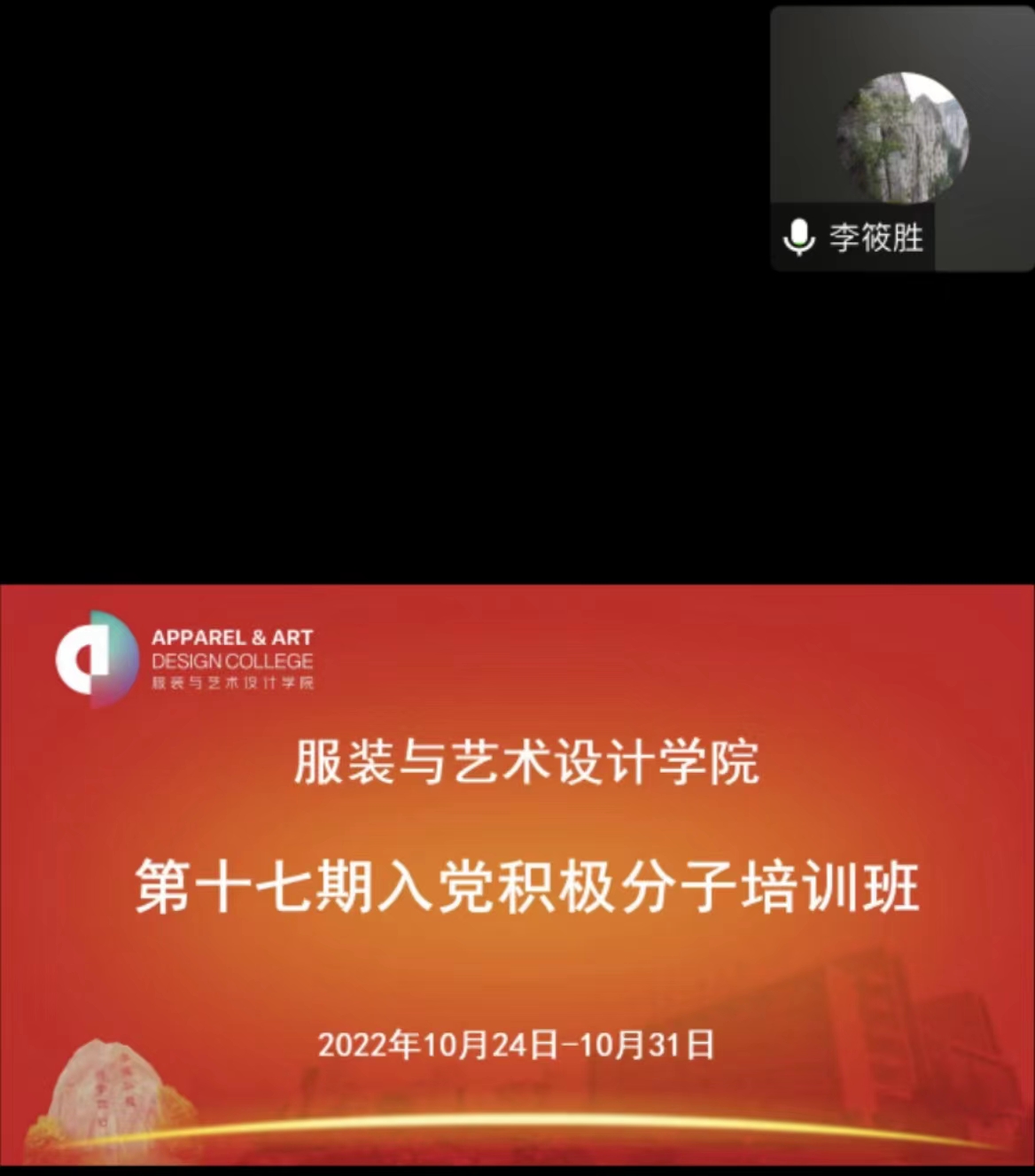 李筱胜在发言中表示,此次培训班在疫情形式严峻的情况下,采取线上授课的方式进行,大家要克服困难,认真学习。李书记并就为什么入党和如何做一名合格的大学生党员做了发言。李筱胜要求各位学员要牢记党的性质和宗旨,要刀刃向内,认真审视入党动机是否正确。他对成为一名合格党员提出三点要求:一是严格政治纪律,严守政治规矩,牢记为人民服务的宗旨,不但从组织上入党,还要从思想上入党,更要从实践中入党;二是树立服务意识,教师要主动把系里的工作做好,学生要团结同学发挥好带头宣传作用,特别是在疫情防护工作中做好表率;三是提高专业水平、专业实践和科研能力,脚踏实地服务于纺织服装行业,服务于西部开发建设。聚焦纺织服装行业特色,牢记习近平总书记在党的二十大报告中对青年的寄语和要求,勇于实践、热爱实践,坚定不移听党话、跟党走,怀抱梦想又脚踏实地,敢想敢为又善作善成,让青春绽放更为绚丽的光芒。