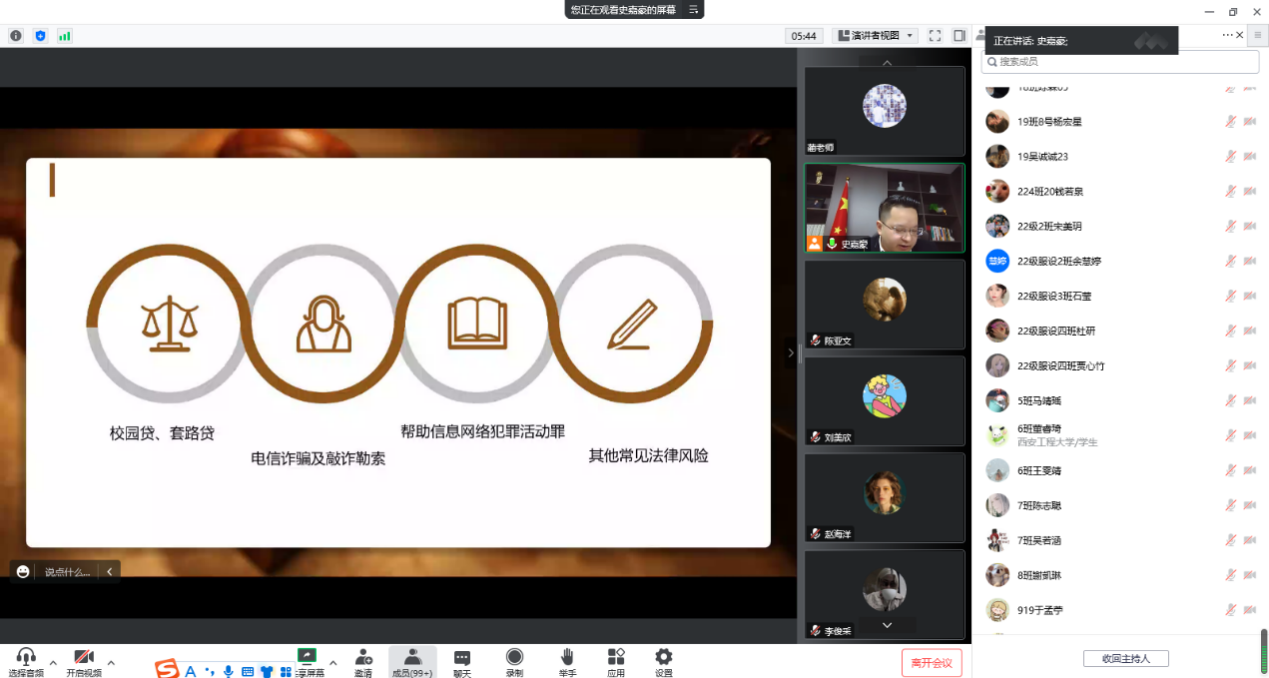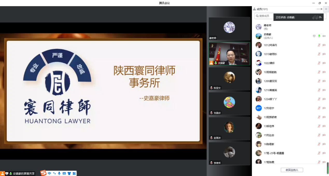 学工办特邀陕西寰同律师事务所创始合伙人史嘉豪律师利用腾讯会议为韩h漫
