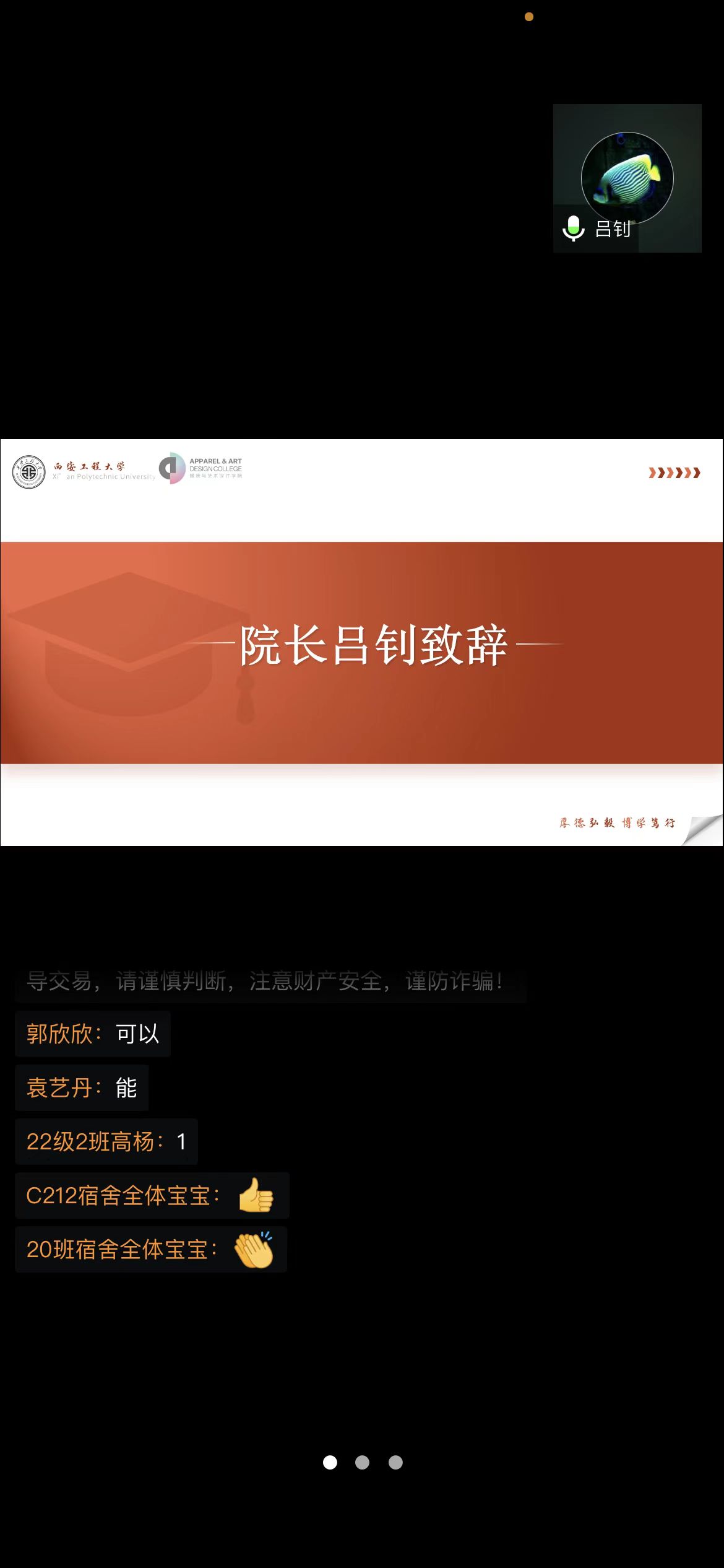 这个优秀平台中追逐梦想,有更好的发展。接着服装设计系副主任单凌老师、2022级服工2班任菲阳分别作为教师代表和学生代表 发言。最后李筱胜书记做了总结发言,李书记从大学生要处理好安全观、学习观、生活观、交往观和面对困难挫折观五观来告诉学生怎么来度过大学四年,怎么来处理大学中遇到的各类问题,李书记深入浅出的话语和具体事例,使学生受益匪浅。