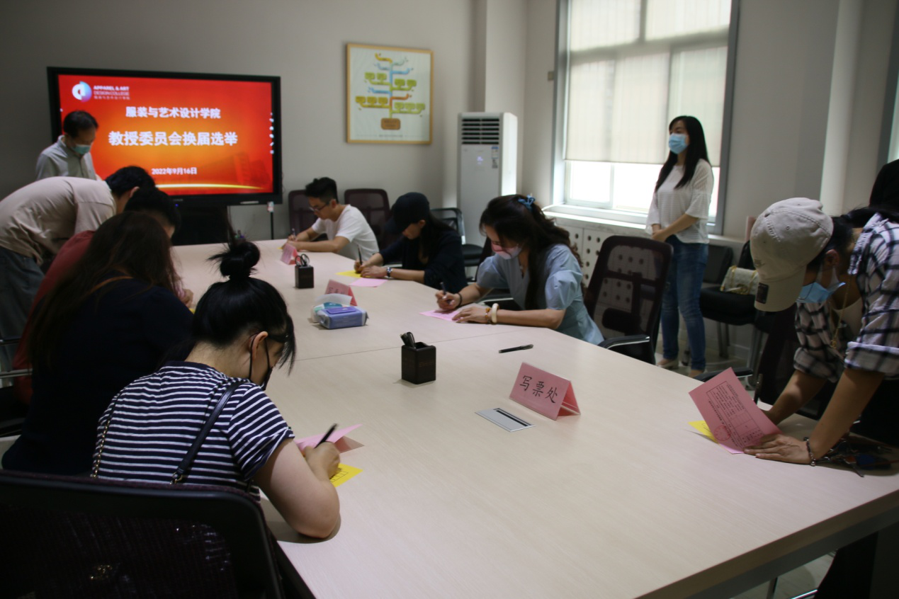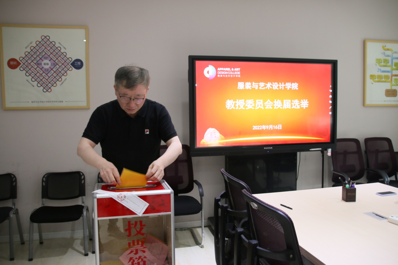 在金花校区服装楼三楼会议室举行教授委员会换届无记名投票选举。副校长戴鸿、韩h漫
