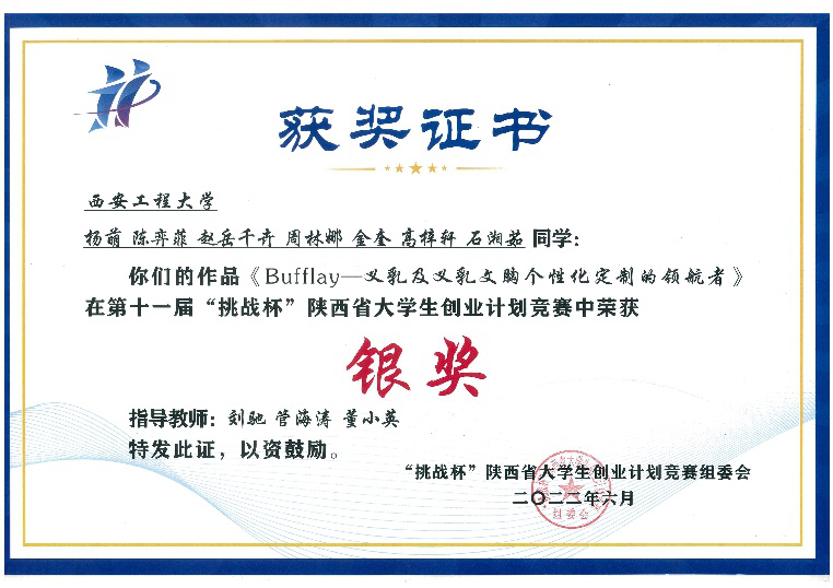 刘驰教授、“内衣人体工效学“团队成员杨萌、赵岳千卉、周林娜等代表西安工程大学参加了决赛答辩。团队成员关注社会民生,解决社会问题,表现非常优异,发挥了创新精神,并最终突出重围获得省级银奖。参赛成员纷纷表示,此次重大收获在很大程度上增强了团队成员的自信心与积极性,他们将继续为建设健康中国助力。学校团委也表示,将继续做好以“挑战杯”竞赛为龙头的创新创业赛事组织工作,持续强化科创实践育人的引领力、组织力、服务力。