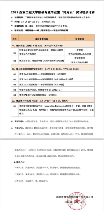 服装工程系邀请深圳博克时科技开发有限公司为19级成衣班、卓越班同学举办“博克云”实习培训。这是服装工程系连续第三年与博克科技开展教研实训活动,服装工程系系主任任军、教师徐永驰、王悦、刘红彦、马飞等,以及2019级服装设计与工程专业同学共计60余人参加了此次实训。