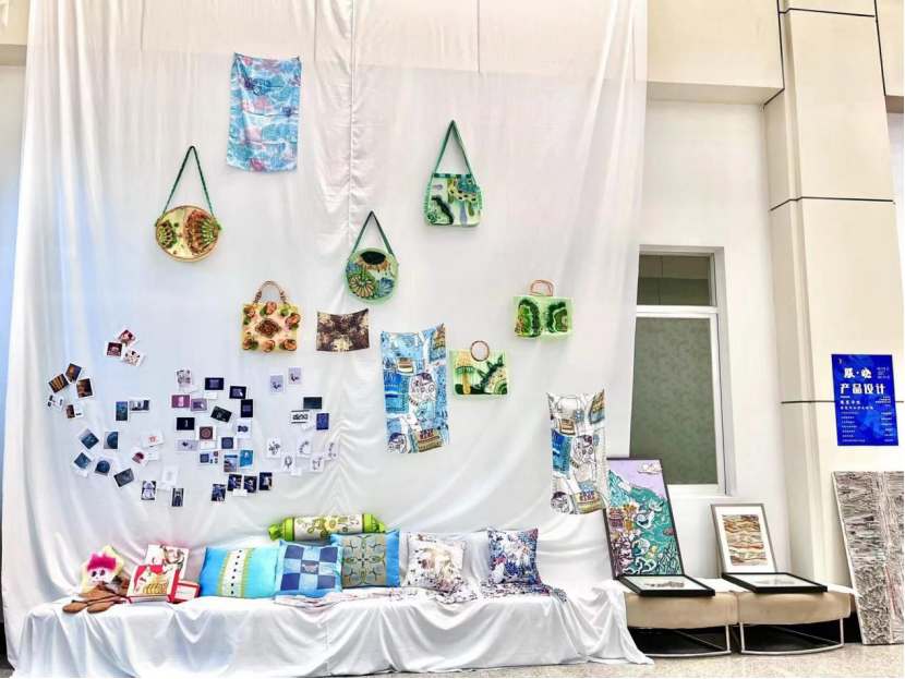 本次交流展通过线上线下结合的方式,从在校本科生的优秀课程设计作品中遴选展出160份作品,包含绘画,平面设计,创意立裁等多种艺术形式。经过多方沟通和协调,对展厅内不同艺术形式的作品放置进行了区域划分,以便观展人员能够有方向、有对比的进行观看。开展期间,韩h漫