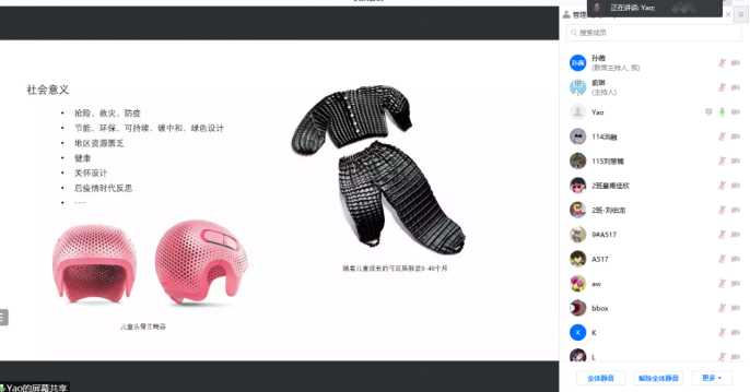 讲座伊始,毕业生贺尧通过一个电脑支架的实例分析解答了设计中最关键的竞品分析问题,同时引出“灵感从哪里来?”的热门话题,并给出答案:丰富的实践经历就是灵感来源!通过分享自己的参赛经验、个人成长以及自己从事设计工作以来的优秀作品,给同学们的大学生活给予了一定的建议。经验分享完毕后,进入了热烈的互动交流环节,同学们纷纷提出了自己的困惑和疑问,如学习期间重点掌握什么技能、就业的选择方向等等,得到了学长的悉心解答,线上分享会圆满结束。
