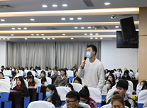 两名主讲人林凯和王宇骁以亲身经历分享自己的参赛经验,详细介绍了获奖作品示例的具体内容与实施步骤。示例特色鲜明且贴近生活,在开阔学生视野的同时,也激发了学生创新创业精神。他们建议参赛选手一要明确团队的研究方向,二要学会利用身边的资源,三要勇于突破所学专业的限制,四要合理分配时间并认真完成作品。经验分享后,现场开展了答疑环节,两位学长对同学们所提出的参赛问题进行了一一解答,并鼓励大家积极参赛,发扬创新精神,为自己的学涯增光添彩。