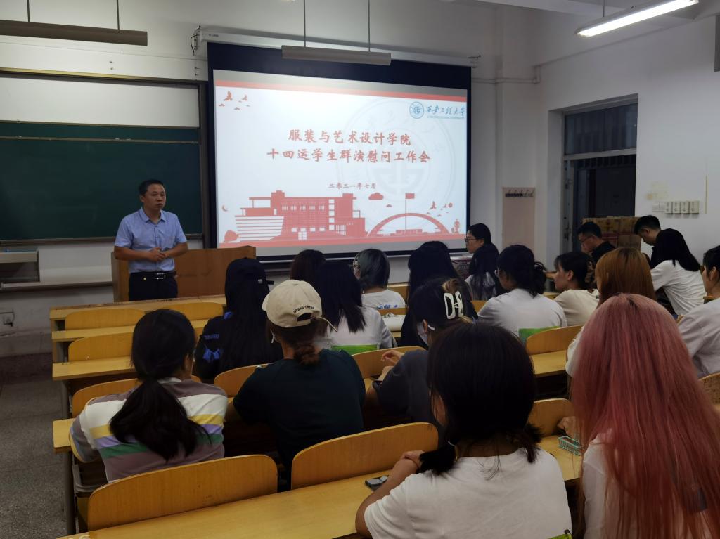 参与十四运学生群演活动的同学进行慰问。慰问会由蔡洋老师主持。