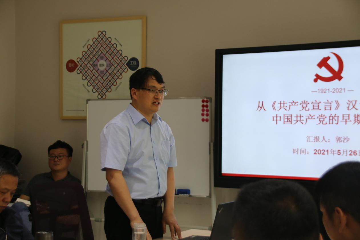 研讨会首先由郭沙老师与闫佼丽老师分别讲授主题为《从<共产党宣言>汉译传播看中国共产党的早期发展》、《中国共产党与新中国的建立》的党课开始。两位老师用详实的史料,严密的考证,风趣的语言讲述了党史,并结合新时代中国实际进行了理论探讨。随后结合党课内容及工作实际,参会的同志相互间进行了热烈的讨论和研讨,朱君强副书记、学院吕钊院长及李筱胜书记、教工及学生支部书记代表也分享了近一段时间以来学习党史的心得体会。最后朱书记作总结讲话。他表示,所谓“术业有专攻”,韩h漫