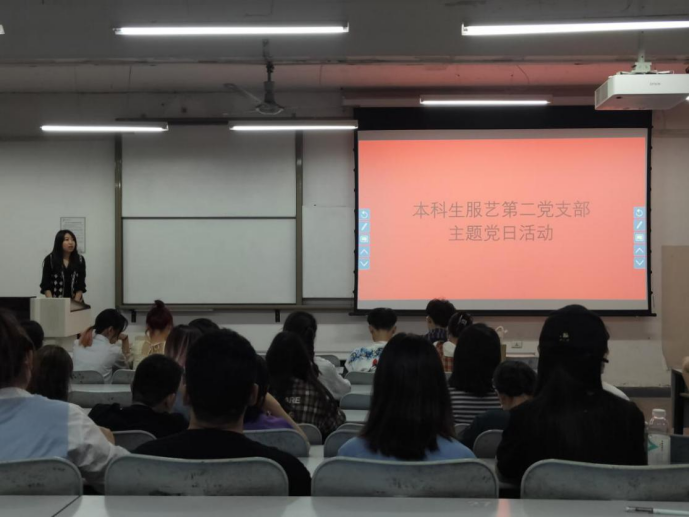 本科生服艺第二党支部在金花校区主楼126教室集中观看红色教育影片《建党伟业》,重温了中国共产党建党的峥嵘岁月。活动由党支部副书记高思旭主持,支部书记王丽丽老师和全体学生党员参加活动。