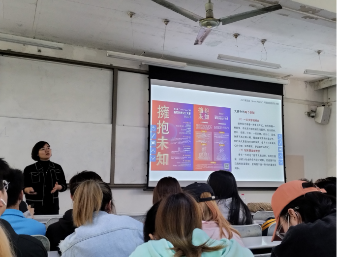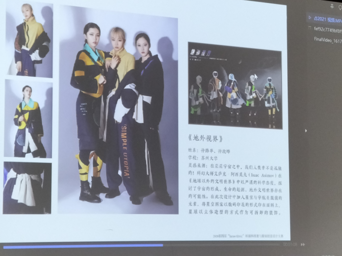 “James Fabric”杯纺织服装设计大赛已成功举办四届,搭建了以时装设计、时尚图案、企业对接等多领域交叉为特色的服装类专业赛事平台,江苏省非物质文化遗产研究基地——江南大学为此次比赛的承办单位。为帮助同学们更加了解比赛,邢乐老师为大家介绍了比赛的相关信息,展示了往届的优秀作品,详细讲解了第五届大赛的主题和参赛要求。第五届比赛聚焦以人工智能为代表的科学技术,以“拥抱未知”为主题,鼓励参赛者们大胆拥抱未知,拥抱对新事物的渴望,拥抱尖端潮流科技的热爱,以实现自然、科技、人文的创意性融合。讲座结束后,同学们主动询问老师关于大赛具体参加事宜,表达了对往届优秀作品的赞美,表示希望自己也能在比赛中学习锻炼,提升自身专业水平。