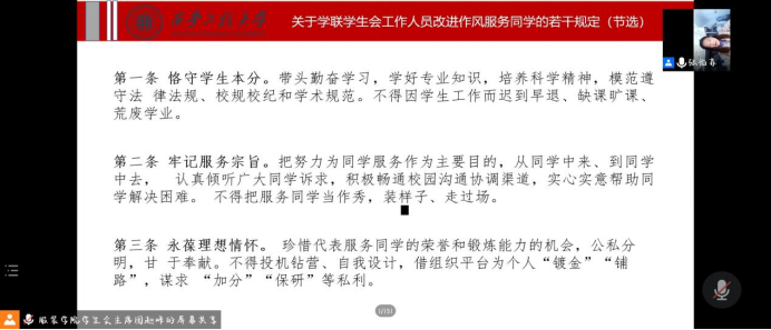 学院学生会主席团干部张怡菲传达《高校学生会2021学年学生干部警示教育》