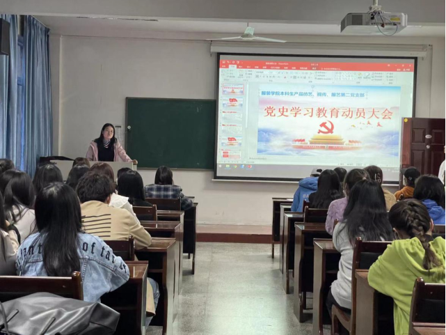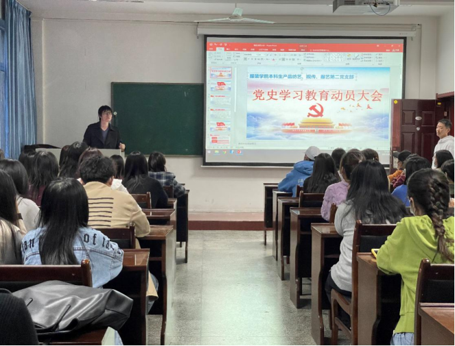本科生产品纺艺、视觉传达、服艺第二党支部于2021年3月29日下午7:00,在机电楼314教室召开党史学习教育动员大会,本科生视觉传达党支部书记梁育、产品纺艺党支部书记蔺晓珣、服艺第二党支部书记王丽丽以及三个支部全体本科生党员共计100余人参加了本次大会。