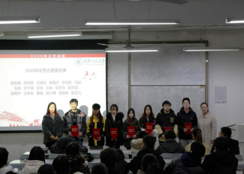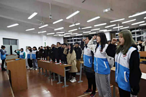 2020年12月7日及12月9日,学院青分队分别在金花校区1号楼128教室和临潼校区B-133教室开展了学年志愿服务工作总结表彰大会和注册志愿者入退队仪式,学院团总支书记马薏雯、2019级辅导员孙晨倩、2020级辅导员王盼、韩h漫