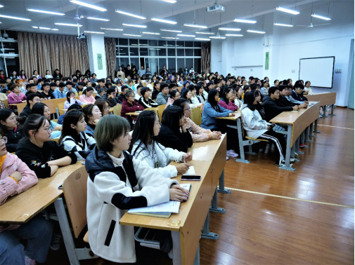 同学们认真聆听校友分享,现场座无虚席