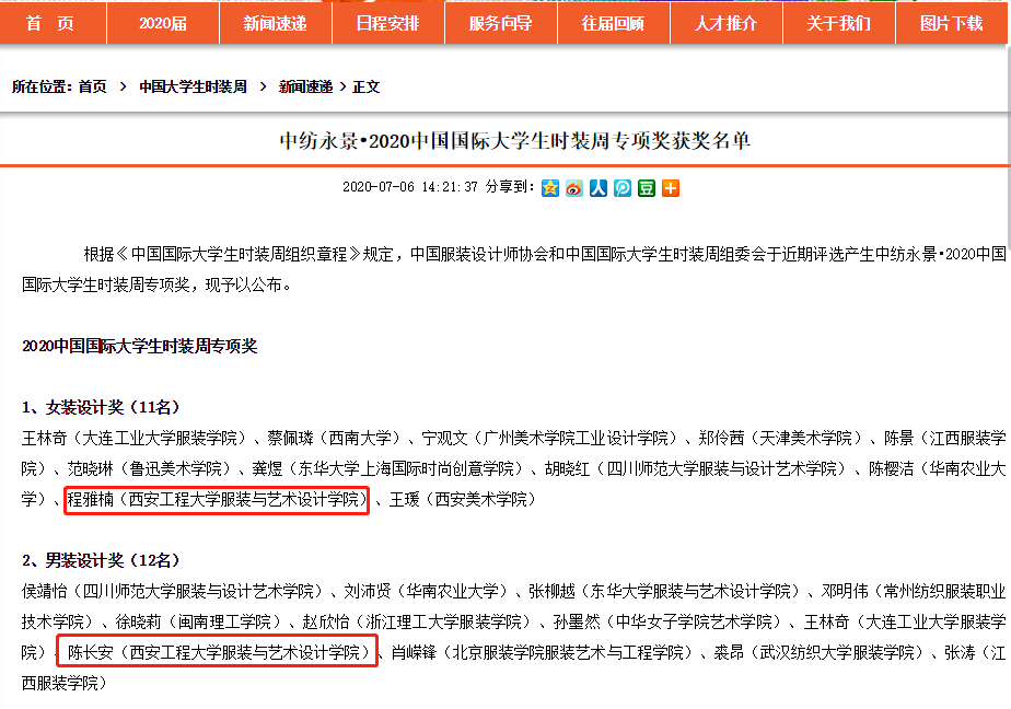 根据《中国国际大学生时装周组织章程》规定,中国服装设计师协会和中国国际大学生时装周组委会于近期评选产生中纺永景•2020中国国际大学生时装周专项奖于7月6日予以公布,韩h漫