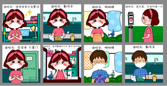 学工办和学工部、研工部在上次制作抗疫表情包的基础上,以研究生和四年级的同学为主要力量,辅以低年级同学,组建制作团队,发挥同学们专业特长,制作了五个系列30余张“返校表情包”,将学生返校后学校的疫情防控的相关要求和有关注意事项通过图文并茂的形式反映出来,同时,还抓住学生返校“进入校门”这个关键环节,制作了“入校流程”动画,帮助同学们了解如何进入校门,提前做好准备,缩短了进入校门的时间。表情包和动画视频经学工部官微和相关学院推广后,已经在师生中广泛传递,取得了较好的宣传效果。