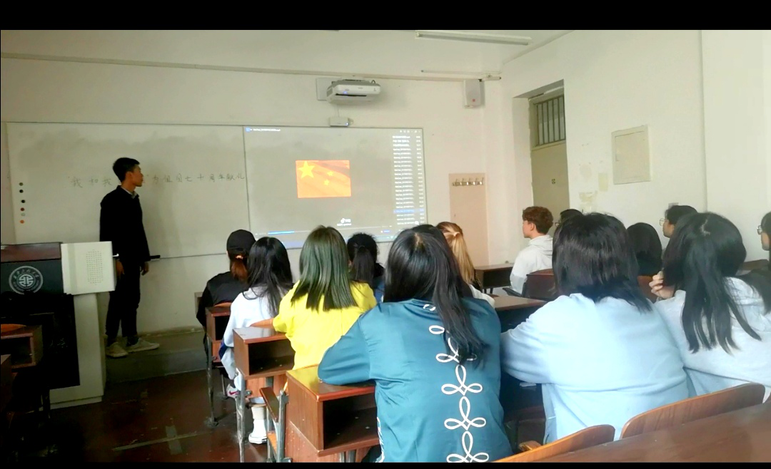 2018级服装与服饰设计3班主题班会播放了精心准备的从开国大典以来关键时刻、关键人物影像,回顾了中华人民共和国成立70年以来在各个方面所取得的巨大进步和不断发生的惊人变化,激发全体学生的民族自豪感与爱国热情。