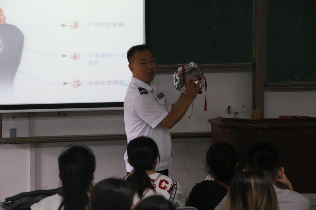 讲座首先在主楼228教室举行。本次讲座的题目是《关注消防 珍爱生命》,由陕西翔安消防知识宣传教育中心的张甲元警官主讲。讲座伊始,张警官给大家播放了几段火灾事故的视频,给大家以警醒,使大家对消防的重要性有了深刻的认识。接下来,他给大家讲解了消防安全检查的内容,灭火器的使用方法,火灾的有关常识,火灾中的逃生方式,介绍了消防器材的具体种类,消防器具的使用方式,进一步增加了大家的消防知识,纠正了大家以往一些对消防的错误认识,使大家对消防有了更深刻和更具针对性的认识。