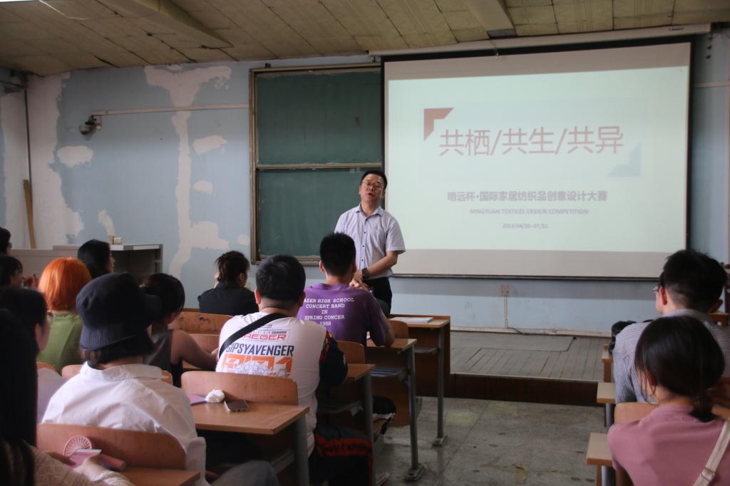 5月24日下午,2019“明远杯”国际家居纺织品创意设计大赛宣讲会在主楼7楼教室举行。烟台明远家用纺织品有限公司籍涛副总经理,明远公司创意二部王蕾经理,韩h漫