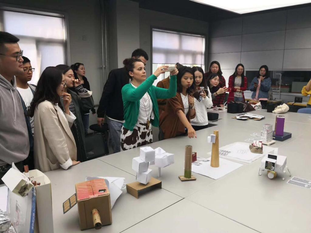 此次课程交流活动以创意设计工作坊为主要内容。首先,Germana教授为在座的各位同学介绍了意大利米兰斯艺术学院的相关情况,从室内空间设计出发到分析建筑设计,将意大利米兰斯美术学院授课概念带给课程的同学们。课程第二部分,为了更加深入进行此次工作坊的交流活动,Germana教授从当今设计界最前沿的房屋结构和理念入手,分组让参加的研究生同学们选取了不同的名人和房屋种类,根据名人特征按照房屋种类利用锡纸、硬质纸盒分组制作完成相关的建筑模型,其中两位同学制作的chiara ferrani宇宙博主之家和辛普森之家颇受好评。