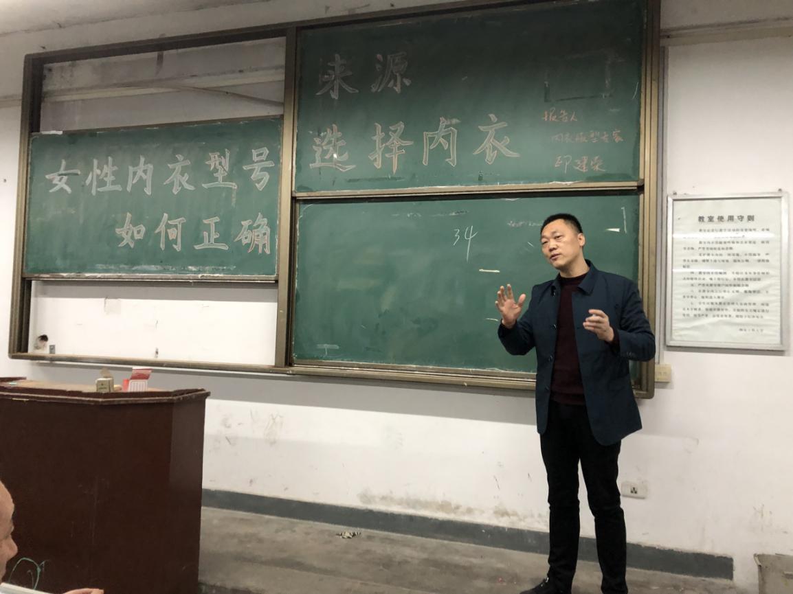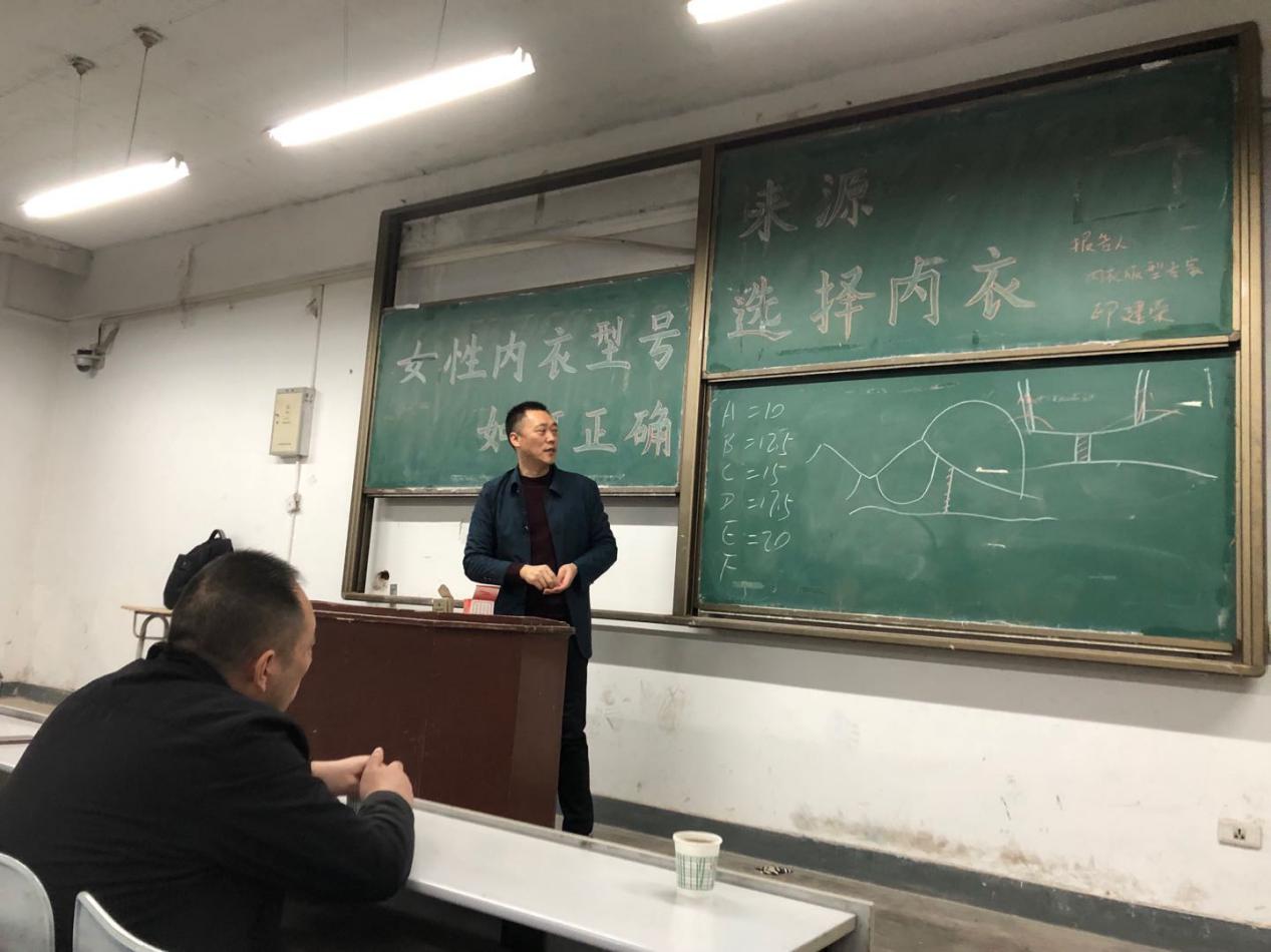 内衣系为帮助同学们学习更多的内衣知识,同时解决学习过程中遇到的各类问题,了解内衣专业前景,特邀请内衣版型专家印建荣老师在金花校区1号楼126教室举行《女性内衣型号来源及如何正确选择内衣》的讲座。本次讲座由内衣系主任刘驰教授主持,2016级内衣班全体同学参加。参加本次讲座的还有西安博奥假肢医疗公司的部分员工和部分2018级研究生。