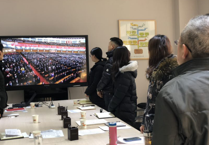 院长戴鸿、书记李筱胜、副书记张骥、没有上班任务的教师、全体辅导员、研究生、本科生代表共计70余人在学院会议室观看《庆祝改革开放40周年大会》现场直播。
