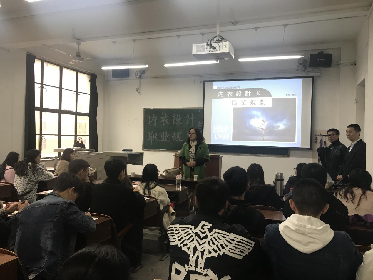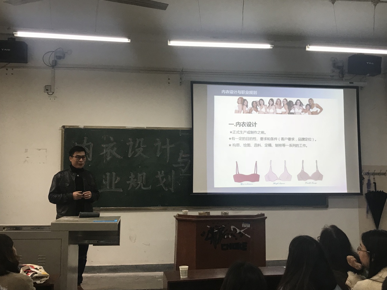 内衣系为了解内衣企业在面向市场实际运营中的具体状况,使教学过程中能够制定更为合理的培养方案和教学大纲,同时也为了使同学们将来能够更好的走入社会,进入企业,特邀请合隆集团东莞合迅服装有限公司研发部陈科经理和人力资源部陈祥江主任在金花校区1号楼303教室举行《内衣设计与职业规划》专题讲座。本次讲座由内衣系主任刘驰教授主持,王玉娟、温星玉等老师出席,2015级、2016级内衣班全体同学参加。