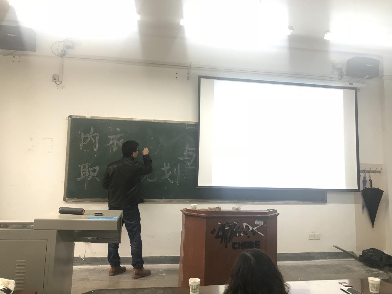 讲座伊始,陈科经理为大家分享了企业里内衣设计的经验。首先,他介绍了内衣设计的工作内容和内衣设计的基本条件,指出在商品经济条件下,只有具备多方面的知识才能有效的把握市场,使产品能够经受市场的考验。然后他分析了要从事内衣设计的基本条件:即掌握流行资讯、掌握必要的人体知识、熟练地掌握基本技能以及明确的经济观念和市场定位。接着他细致的介绍了内衣设计所包括的物料设计、结构设计和工艺设计的各个方面。最后他语重心长的建议:一个人想要成为人群中的佼佼者,必须得玩转健康、科技和跨界三个方面,要多方面,全方位的了解自己、发展自身能力。