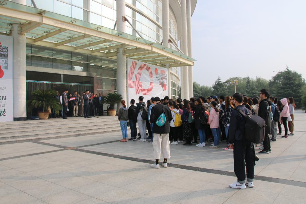 独立建校四十周年纪念活动之时尚创意设计静态展开幕式在临潼校区图书馆一楼北广场隆重举行。副校长朱永民、校总会计师田靖鹏,韩h漫