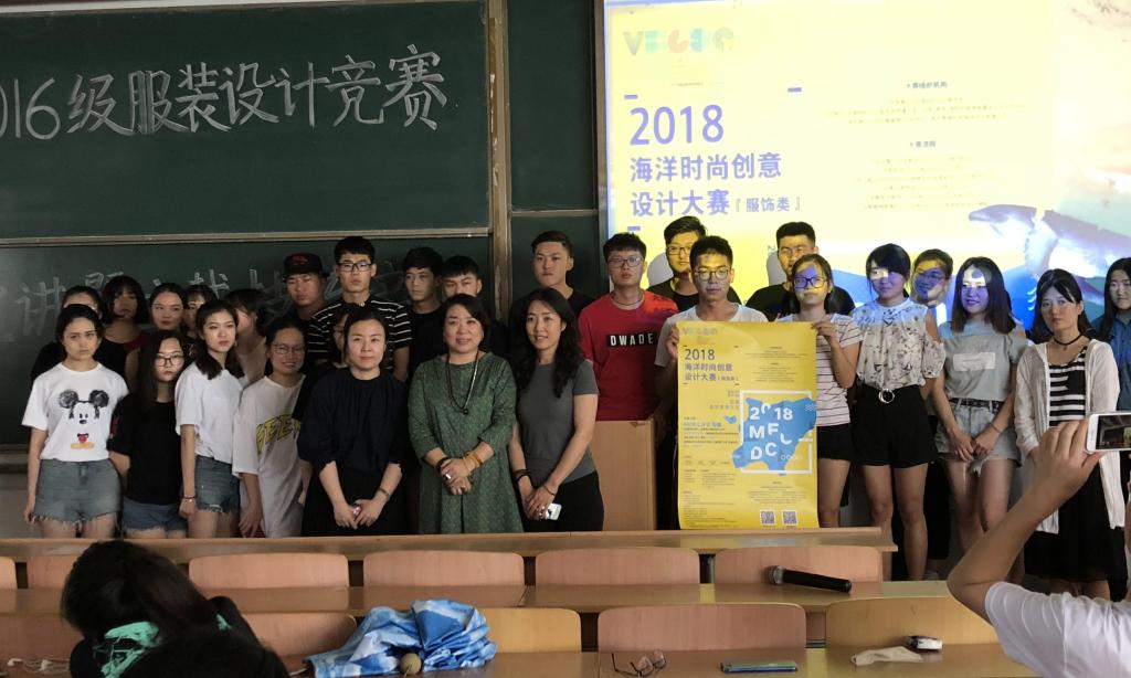 然后,孙洁进行服装设计竞赛宣讲,孙老师对2018海洋时尚创意设计大赛(服饰类)从大赛流程、票选环节、决赛和颁奖典礼等做了详细介绍,向同学们说明此次赛事的征稿要求、注册要求、大赛报名注意事项、大赛的规模和设计成果。