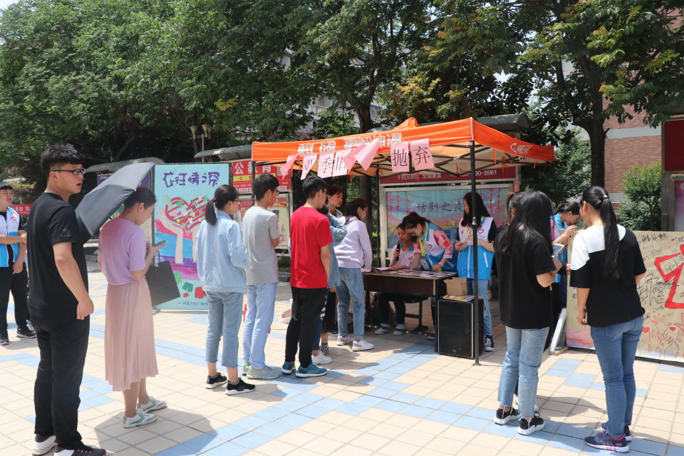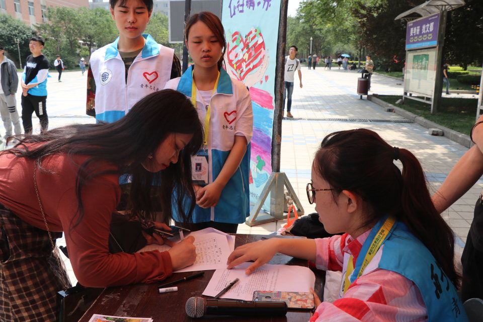 青分队首先带领青年志愿者们,共同开展了一次“毕业季旧衣捐赠”活动,并希望可以通过本次活动传递爱心,提倡勤俭节约。活动于当日中午11:30在中心广场正式开始。青分队成员与志愿者们通过广播宣讲与口头阐述的方式向来往同学介绍本次活动。活动分线上报名、现场捐赠、签名留念三大部分,参与者除可以获得第二课堂学分外,还可领取韩h漫