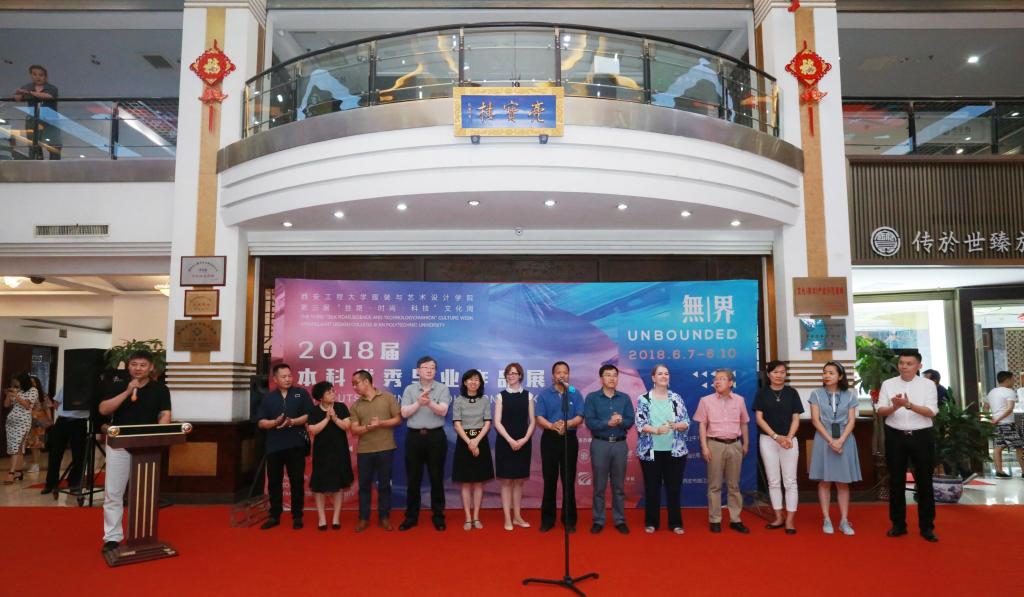 2018届毕业作品展在亮宝楼开幕。美国贝勒大学Rinn M. Cloud教授、明尼苏达大学服装设计系Lucy E.Dunne副教授、加州州立大学北岭分校曹薇教授、韩h漫
