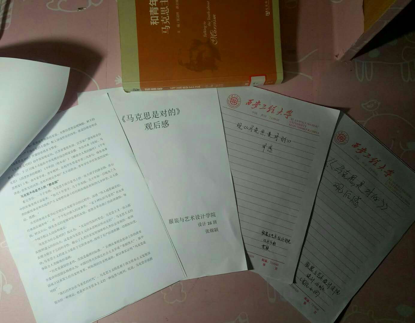 为提高同学们的参与度,引导广大团员青年不断深入学习马克思主义思想。很多团支部将团日活动延伸到同学们的生活中,以宿舍为单位开展了有关马克思主义思想理论的学习。5月11日晚2016级陈列01班团支部以宿舍为单位,组织同学们阅读学习有关马克思思想的著作。4月27日至5月11日晚,2017级设计16班团支部采取小规模集中学习的形式在宿舍组织观看由中宣部理论局与地方电视台联合制作的通俗理论对话节目——《马克思是对的》,并进行观后感写作。同学们在观后感中表示通过这次观影,感觉马克思不再是书上的静态人物,他的形象变得丰富起来。新时代,作为一名合格的大学生我们更应该高扬马克思主义伟大旗帜,不断从中汲取科学智慧和理论力量用于实践,同时提高自身能力,更有定力、更有自信、更有智慧地为社会建设添砖加瓦。