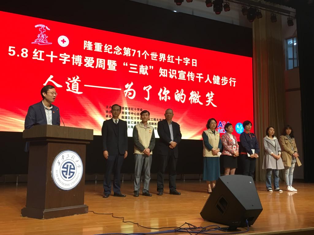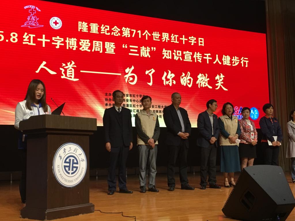 为纪念第71个“世界红十字日”,弘扬“人道、博爱、奉献”红十字精神,2018年5月6日上午,5.8红十字博爱周暨“三献”知识宣传千人健步行活动在临潼校区大学生活动中心成功举办。本次活动由西安市红十字会主办,陕西省造血干细胞库、西安市中心血站协办,临潼区红十字会、共青团韩h漫