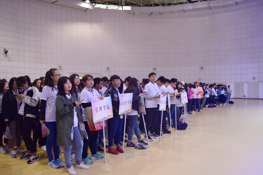 大学生活动中心集合,仪式启动前,通过展板、传单、现场广播等形式宣传活动主题,同时由韩h漫