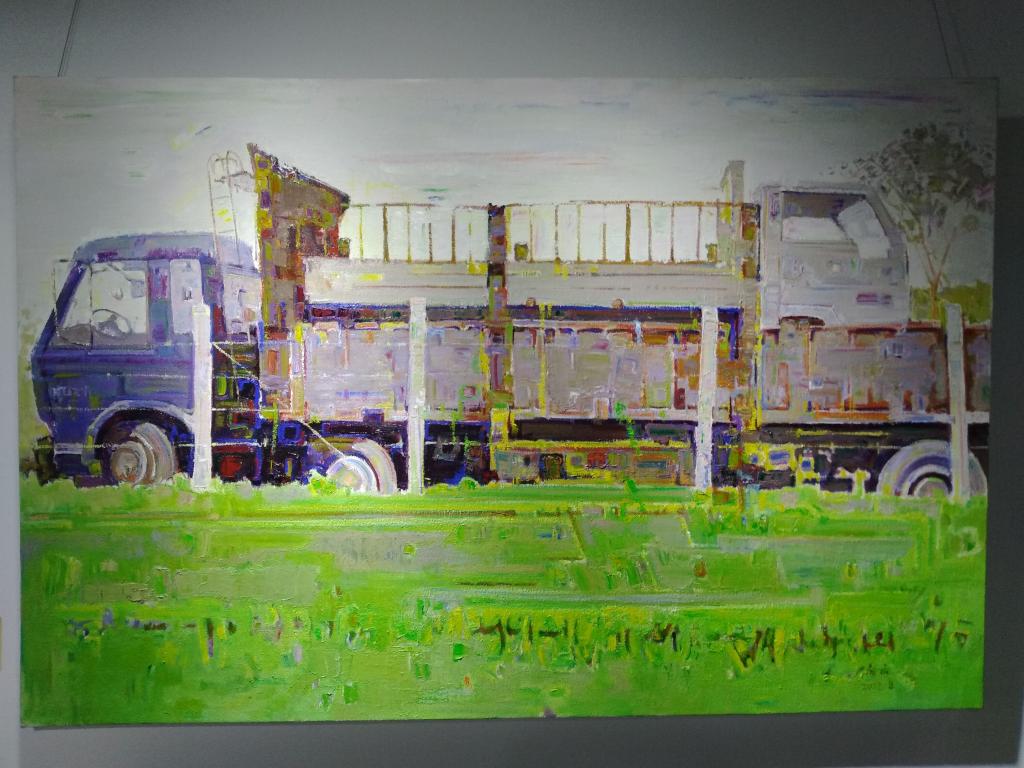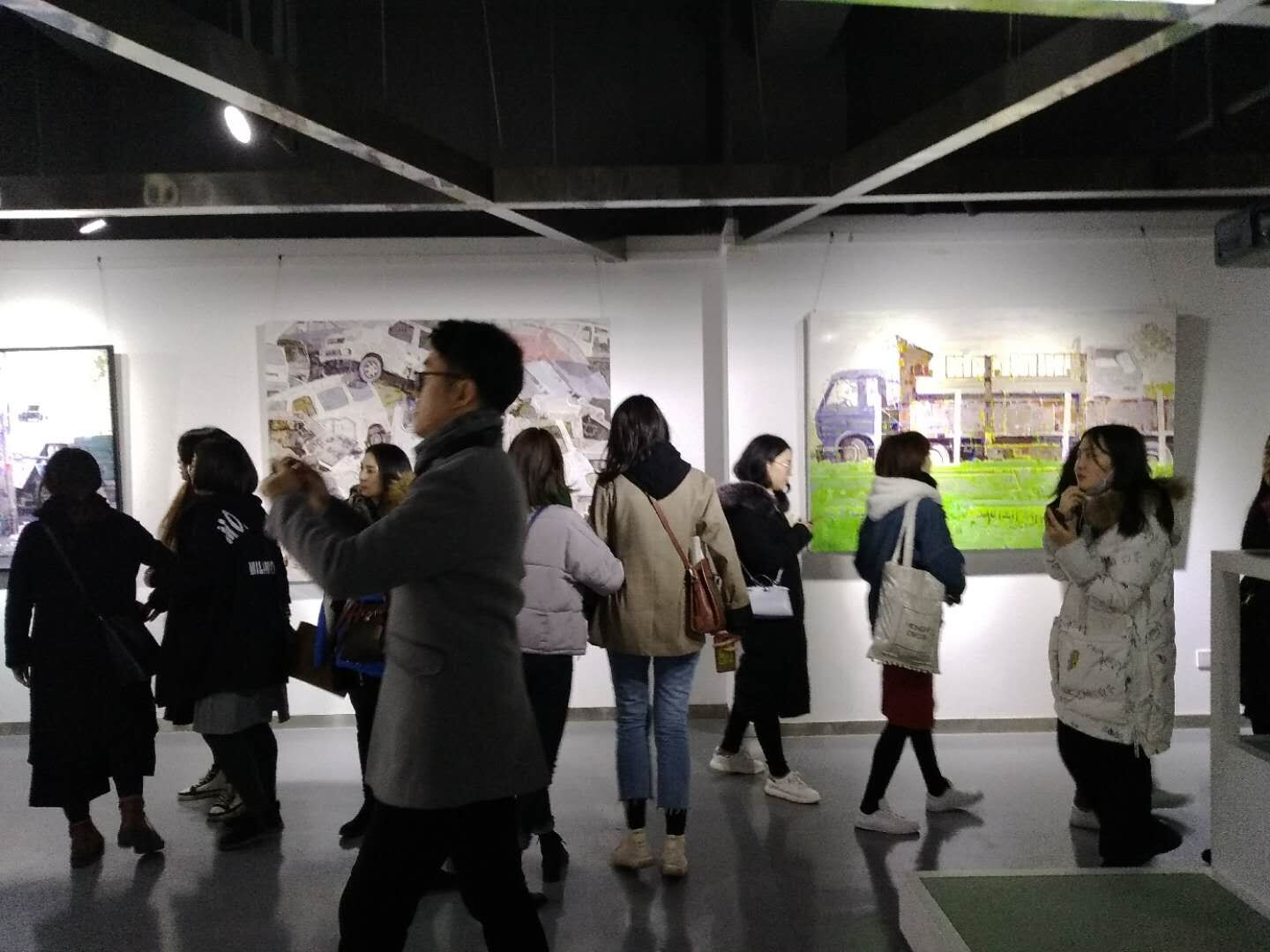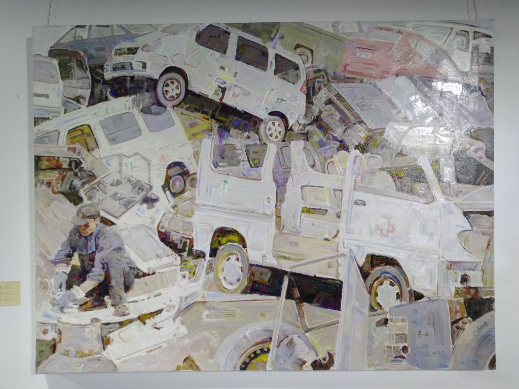 的青年专业教师,均毕业于西安美术学院,在工作之余都潜心坚持绘画创作。此次展出的就是三位老师近两年来的28幅油画作品。他们的作品在整体面貌上都是偏写实的风格,是一种形象直观可见的,从造型、色彩、空间到现实的真切体验,对自然和生活的深入观察。同时,他们三个人的作品又有着各自的鲜明特征和审美趣味,试图在不同的写实语境中找到自己的定位,如现实主义写实、浪漫写实、象征写实、观念写实以及装饰写实等。王肖霏的作品以写生小品的形式感受自然界,试图在田园牧歌式的抒情和现代艺术的装饰趣味之间找打一种表达的可能性,作品构图新颖,清新脱俗,意境浪漫宁静,画面具有国画般的意味,仔细读来犹如散文。张晨阳的室内空间作品通过对现实性和象征性的描绘处理,让画面充满了强烈的剧场感和荒诞感,作品最具理性美,严谨的透视,纵深的空间,张弛有度的描绘,画面具有诗歌美。李春山的废旧车辆系列作品,试图通过对工业废弃物的描绘,对工业生态的关注,表达一种他所理解的“文明的质感”,作品最具叙事性,大尺幅、大笔触,大刀法、大色块,干脆利落,画面张力十足。三位老师的作品体现了他们各自在绘画语言和形式上的探索,带来了多样的视觉感受,得到了现场观摩的领导和观众的好评。